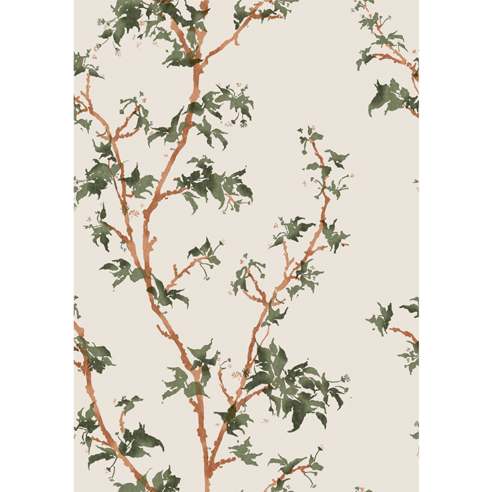 Chinese Branch captures the watercolour nature of brush painting, an art that spans thousands of years of tradition. Its delicate, painterly detail evokes a tranquillity in elemental tones of Leaf Green, Sage, Blossom Pink, and Duck Egg with an autumnal Ginger.