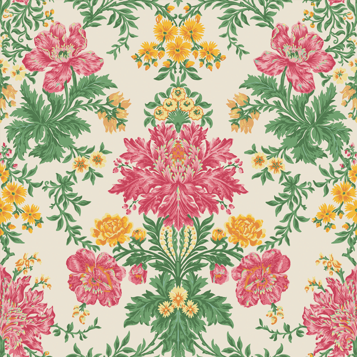 Poppies Soft Fuchsia, Buttercup and Fern on Cream