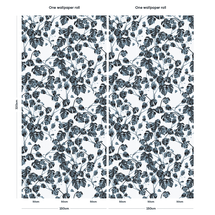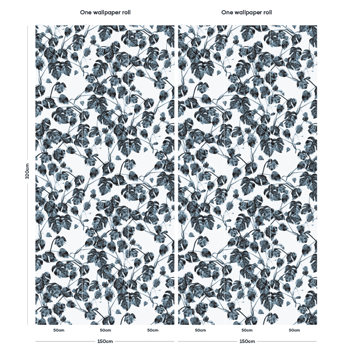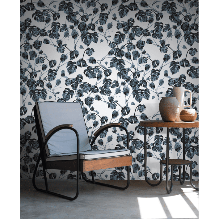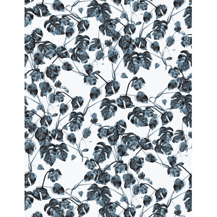 Peikonlehti wallpaper was designed by Outi Virtanen and is inspired by the beauty of Scandinavian nature scenes. The blue watercolour tropical leaf wallpaper incorporates dark inky leaves that are in the process of unfurling and entwining across any wall to represent the vibrancy of life in all forms.