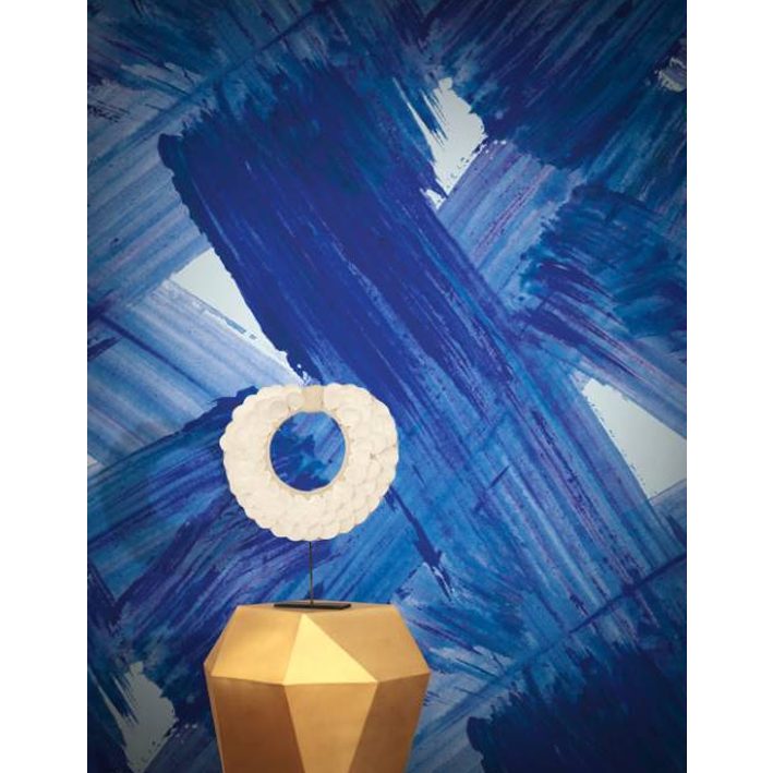 Plato wallpaper by Aoi Yoshizawa in deep blue was initially hand painted by the artist with fine detailing that remains behind from the grain of the paint and movement of the brush. This blue contemporary abstract bold wallpaper bring together control and chaos in an innovative manner.