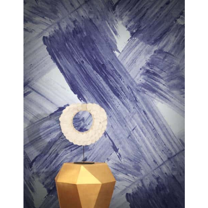 Featuring violet hues on a white background, the Plato wallpaper in lavender shows the emotions of an artist at work. This purple contemporary abstract bold wallpaper retains texture and movement of the brush strokes and the paint grains to show a mixture of chaos and control.