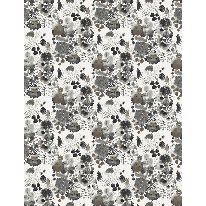 Pom Pom wallpaper is a colourful design created by Outi Virtanen to add a splash of nature to a youngster’s space. The cream colourful watercolour kids wallpaper features interesting characters who peek out from Scandinavian foliage to add a sense of the whimsical to any room.