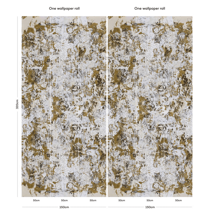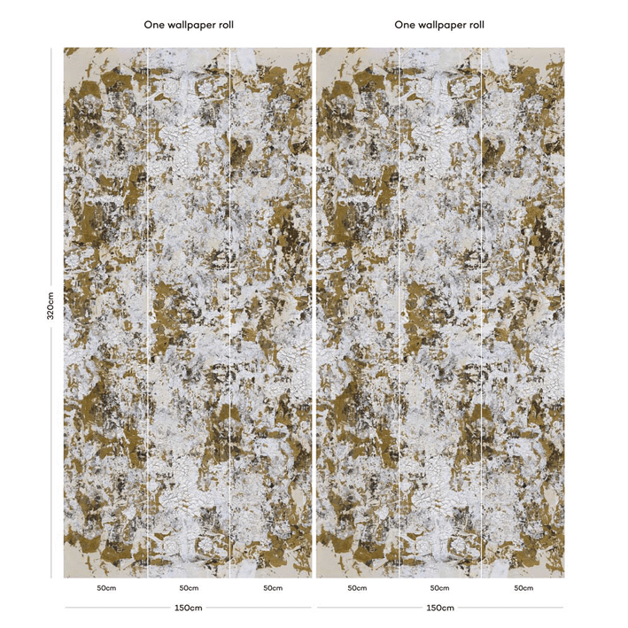 Kiki Slaughter is an American abstract artist whose process often involves mixing different types of paint through laying, pouring, and scraping techniques. Safari wallpaper is an excellent example of that and come inspired by the original artwork. The gold & white beautiful shabby chic wallpaper merges the old with the new in a delightful wall covering.