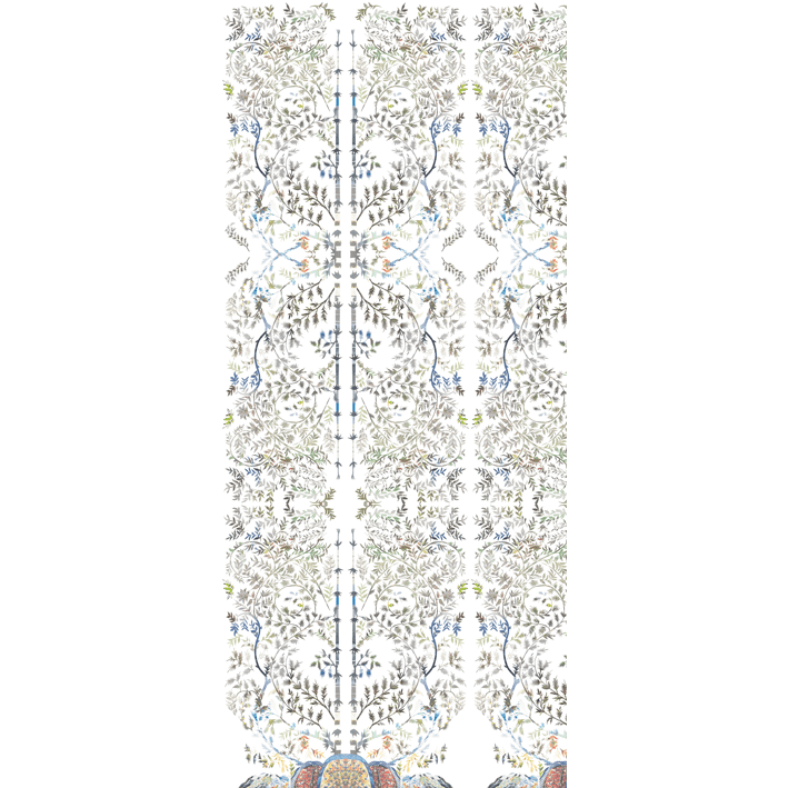 This multicolour & white romantic pretty floral wallpaper was designed by Chinese artist Xin Song who creates work based on collage and found imagery. Xinsong01 wallpaper uses an array of different colours to weave a beautiful image that grows from the floor up toward the ceiling.