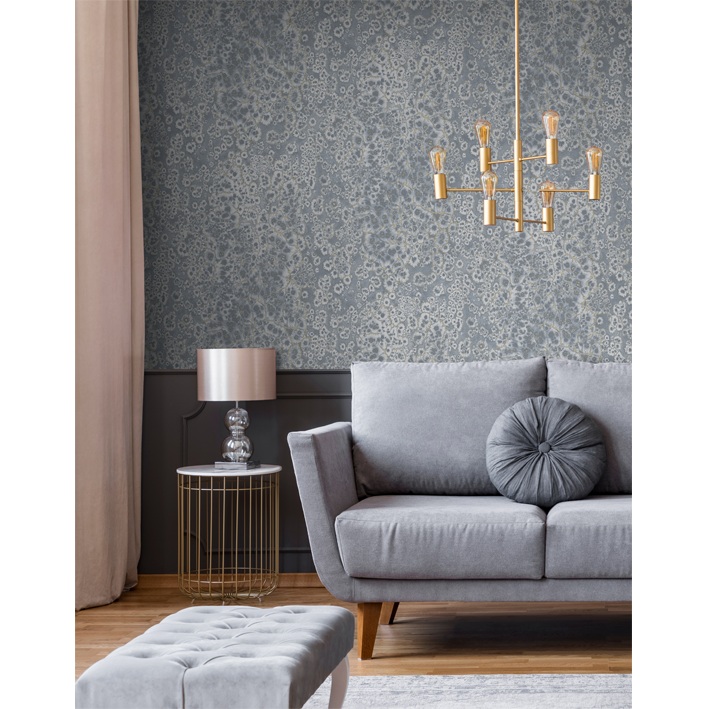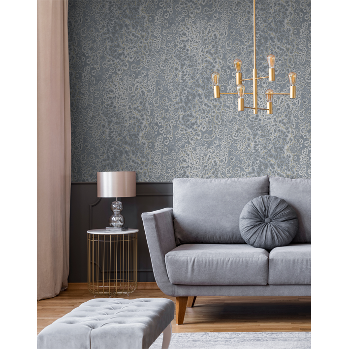 Archipelago Gold explores the idea of blurred border between the outdoors and indoors. Crystalline textures running through the surface of the wallpaper create traces reminiscent of landscapes in the Finnish archipelago. The design was created by experimental painting technique utilising salt and liquid sugar. By applying salt or sugar on watercolour the pigment forms intriguing traces on a wet base. The wallpaper is finished with gold metallic coating that highlights the ethereal atmosphere.