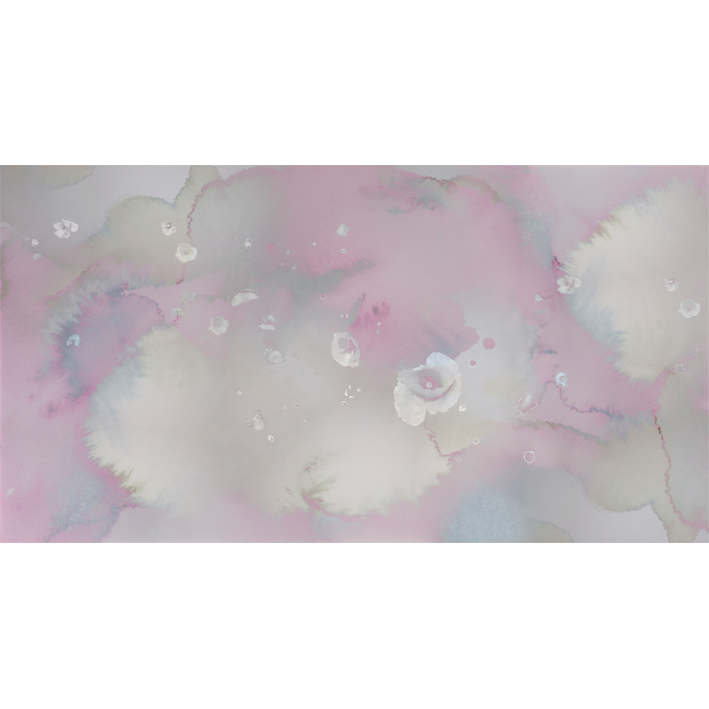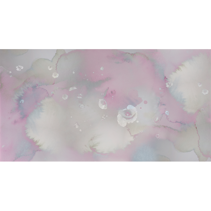 This stunning wall mural celebrates the elegance and beauty of the natural world by interlacing floral and cloud motifs. Artist Miriam Stayte has created a delicate pastel watercolour backdrop that projects us upwards into the nebulous skies, whilst delicate silver toned poppies rain downwards. Combining this pink & white floral cloud wall mural with coordinating soft furnishings in your living room will create a stunning contemporary pink interior.