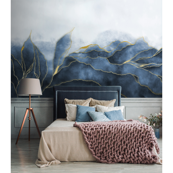 If you’re looking for a wallpaper that will make a statement, look no further than the Grasmoor blue & gold abstract leaf wallpaper mural. This luxurious wall covering features an intricate abstract design in shades of blue and gold, with metallic accents adding a touch of glamour. Perfect for creating a focal point in any room, this mural is sure to wow your guests.