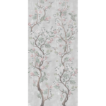 This white Chinoiserie bird wallpaper, part of our “Matsumoto” collection features a host of details to create an elegant and luxurious atmosphere in any room. The Matsumoto wallpaper offers a pale blue background with a foreground in white and grey that incorporates exotic white birds resting on or near the chinoiserie-style boughs.