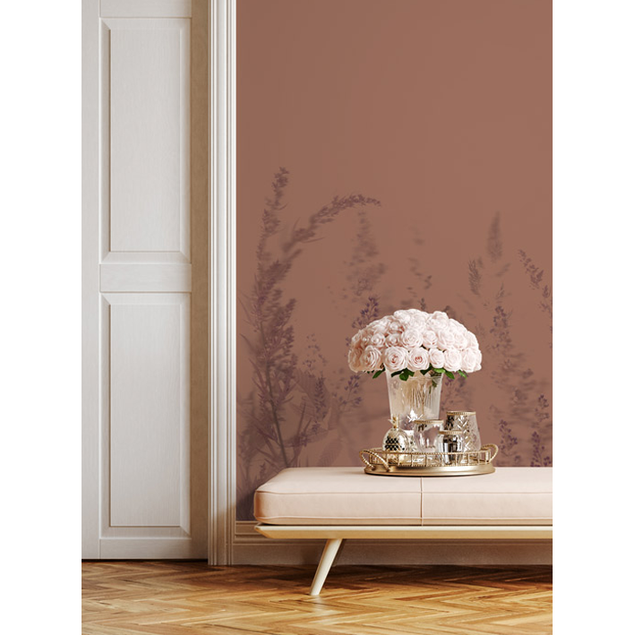 Windy Meadow wallpaper takes the natural beauty of flowers and plants and places them in a breezy environment that creates a feeling of romance. This orange Scandinavian nature wallpaper was designed by Anna Kuukka and creates a focal point that speaks to relaxation and enjoyment of the small things.