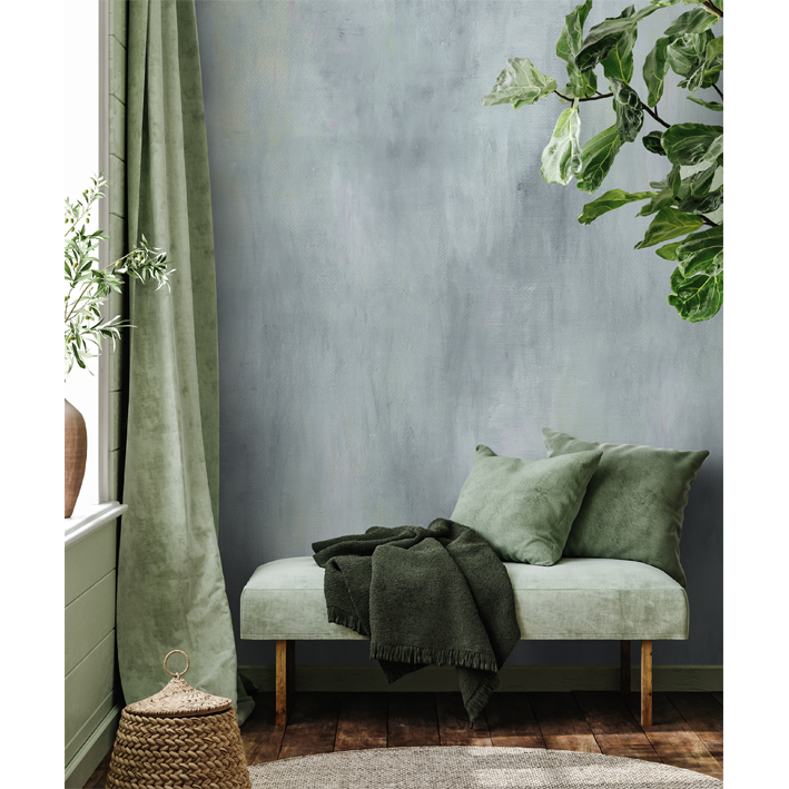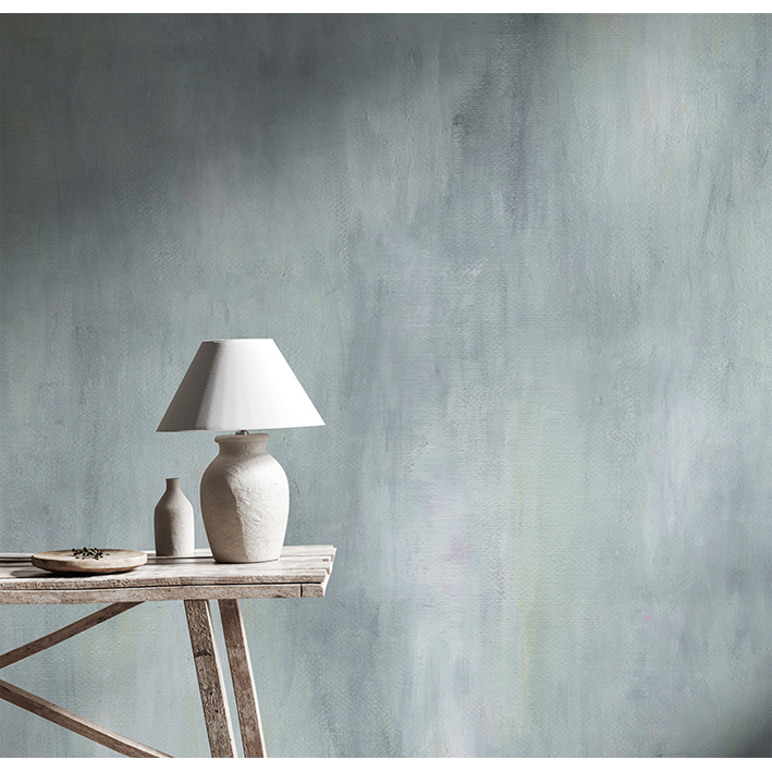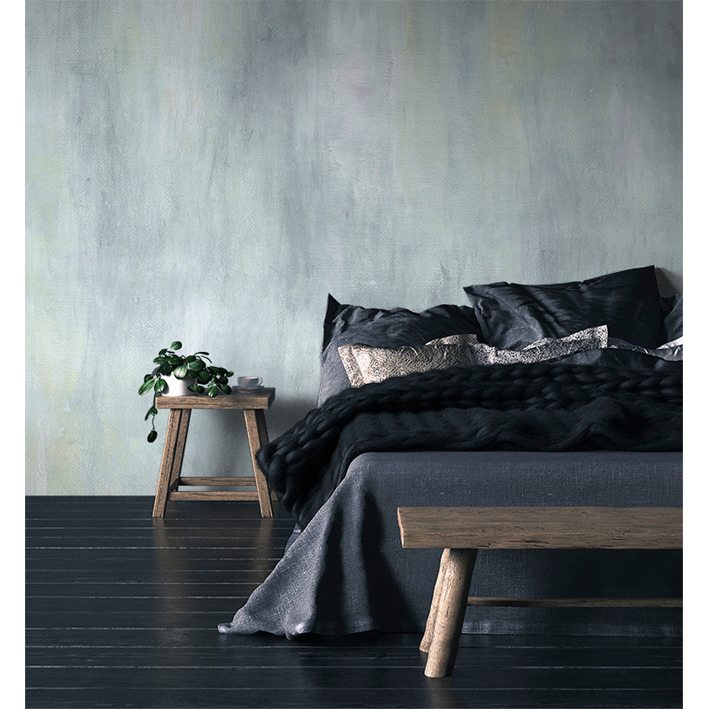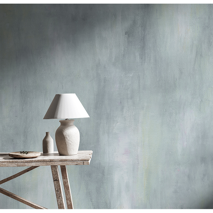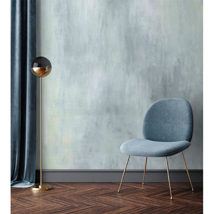 The stunning watercolour stains and acrylic brush-strokes represent the traces of the passage of time on a stone surface. The gentle cool blue ombre color pattern creates nuances of light and shadow giving both depth and structure to this abstract texture wallpaper mural design. Add interest to a bedroom with this atmospheric wash of blue and gray abstract motifs and allow the hypnotic pattern to create the perfect sleep space.