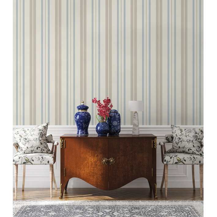 Not all classic wallpapers are the same, as evidenced by this white & grey classic stripe wallpaper. When used as a living room or dining room wallpaper, it adds a touch of lightness to the space and opens up the room for conversation and creativity. This wallpaper complements a variety of décor options in a modern home.