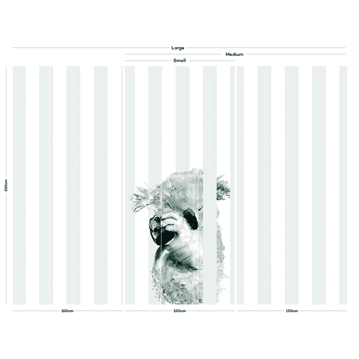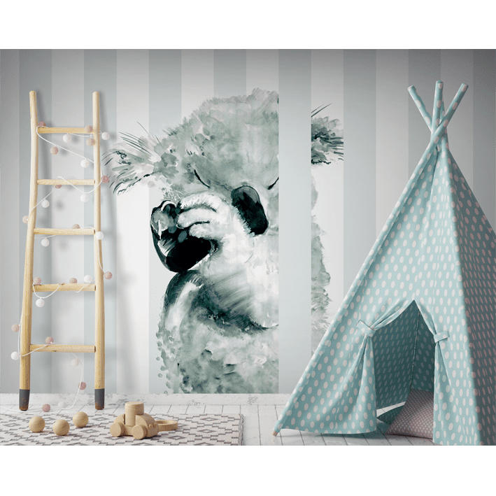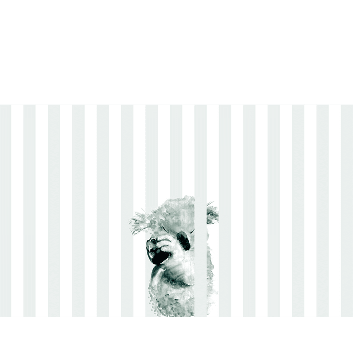 It’s nap time for a sleepy koala who’s drifting off to sleep amongst the stripes of the Koala Stripe wall mural. A calming Scandinavian wall mural with a clever take on traditional stripe wallpaper, ideal for a kids bedroom or as a nursery wallpaper.