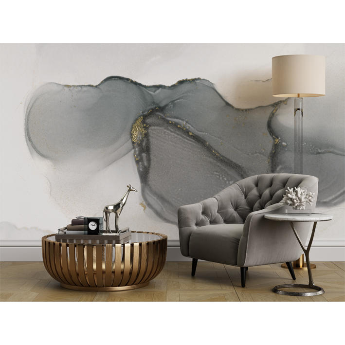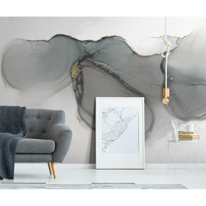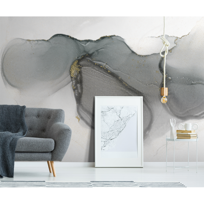 In this stunning grey and gold wall mural, a bloom of watercolours swirls around gold detailing. Beautiful, striking and original – if that describes your home, then this is the perfect abstract wall mural for you.