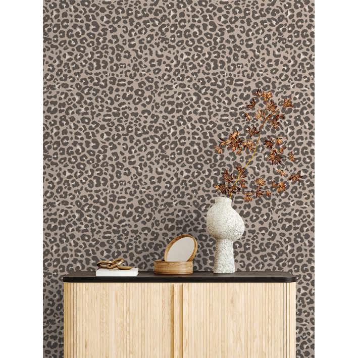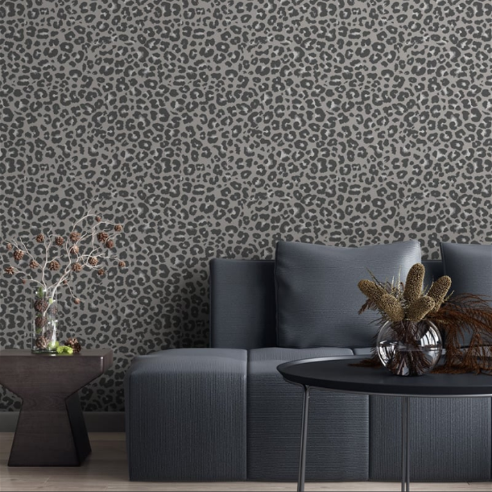 This grey leopard print wallpaper from our Zambezi range will create a stylish space for you and your family. It features a light grey background, black rings like spots on a big cat, making it similar to a grey cheetah print wallpaper, and a white centre that creates a sense of levity in the space. In addition, this bedroom wallpaper can be used to add an exotic feel to other spaces like living rooms, dining rooms, or bathrooms.