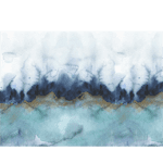 Mystic is a gorgeous wallpaper mural in an abstract style designed by painter Jen Merli. The teal & grey abstract wallpaper mural incorporates intricate detailing in gold that flashes across the watercolour background. The colours press against each other to create a backdrop that could be seen while standing on the beaches of the sea.