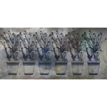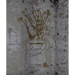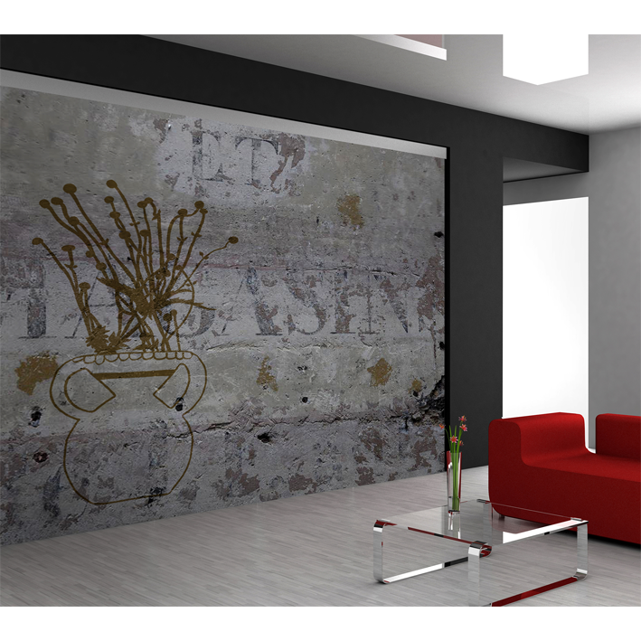 From an "advertisement" painted more than a century ago, almost completely erased, there remains this small vase of Japanese anemones, without petals, for a very decorative panoramic wallpaper.
