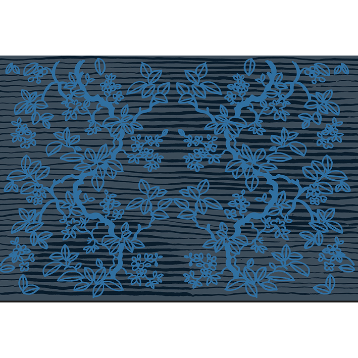 ARBRE JAPONAIS SUR RAYURES BLEUES
