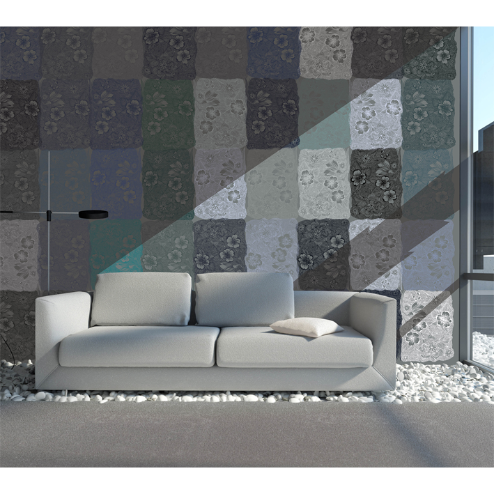FLEURS CHINOISES GRISES FOND MUR ANCIEN