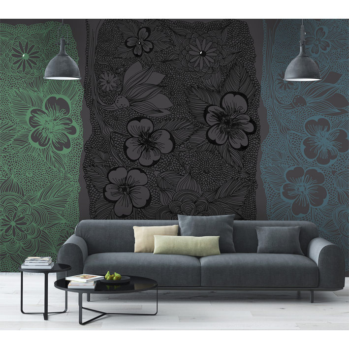 FLEURS CHINOISES GRISES FOND MUR ANCIEN