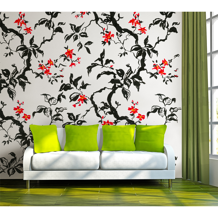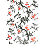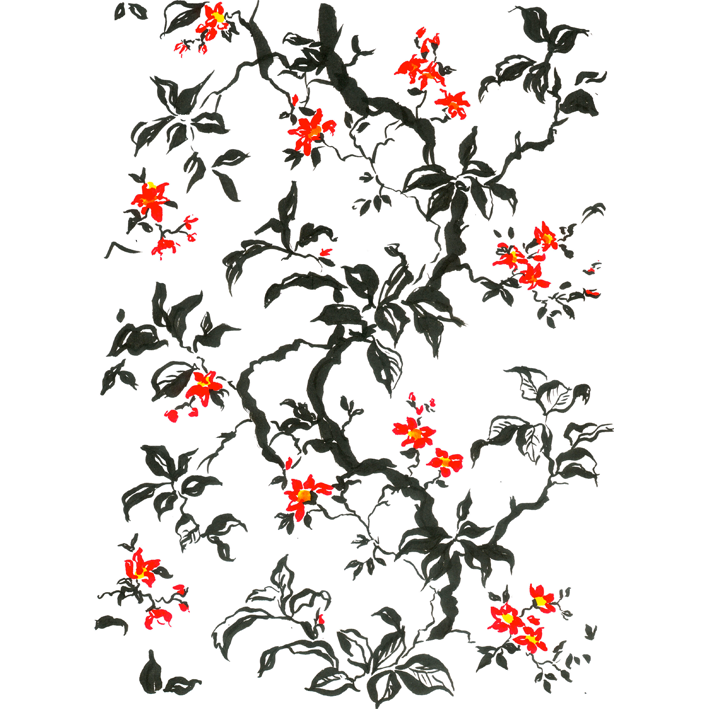 ARBRE ET FLEURS ROUGES SUR BLANC
