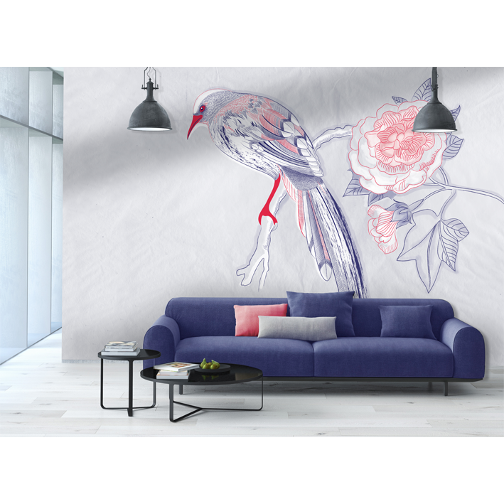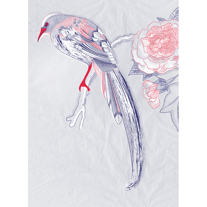ARBRE ET OISEAUX ROSE SUR GRIS