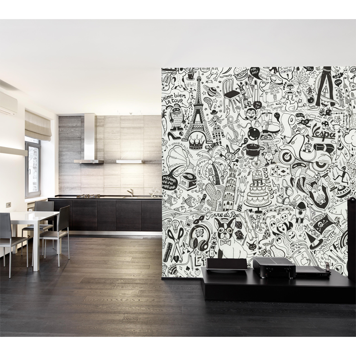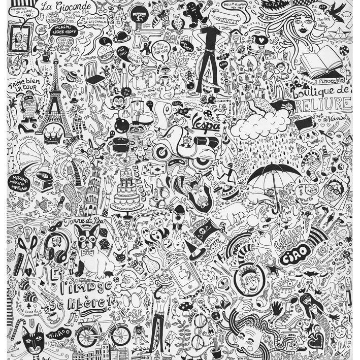 PARIS ROME NOIR ET COULEURS SUR BLANC