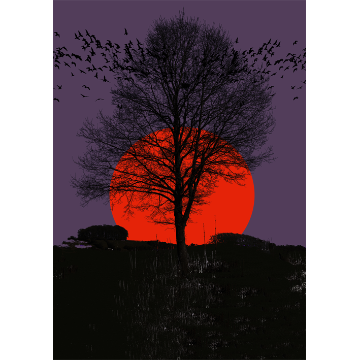 ARBRE ET OISEAUX ROSE SUR ROUGE