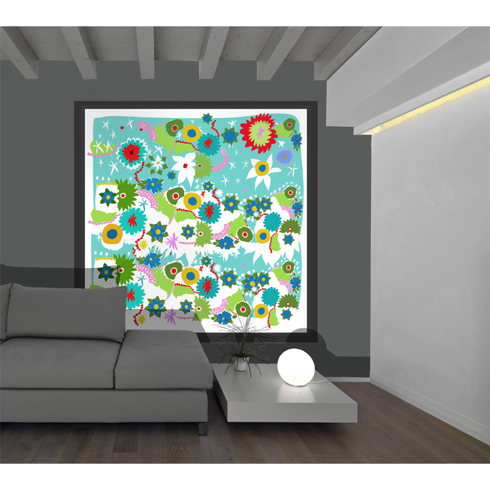 FLEURS BLEUES GÉANTES SUR FOND BLEU
