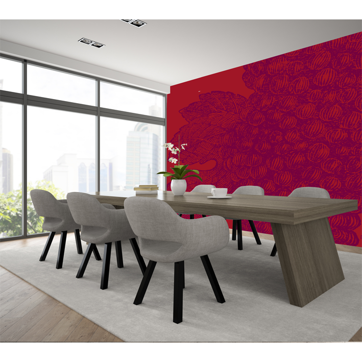 ARBRE ET OISEAUX ROSE SUR ROUGE