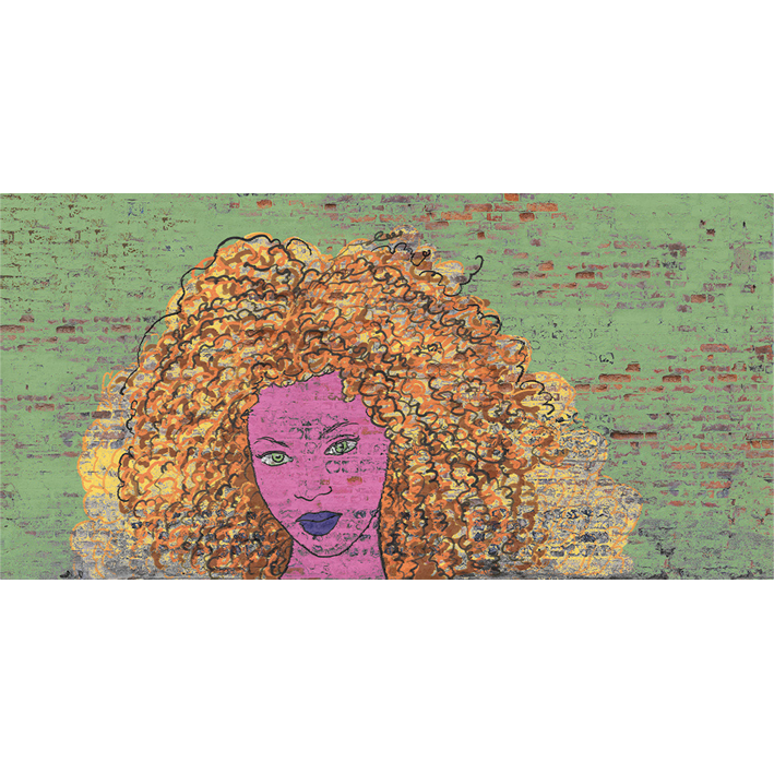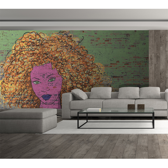 Flashy monumental portrait of a Hollywood star, graffitied in the green painted brick! The sun and bad weather have eroded the stone and the paint, but the star is still there, for the beauty of this panoramic wallpaper!