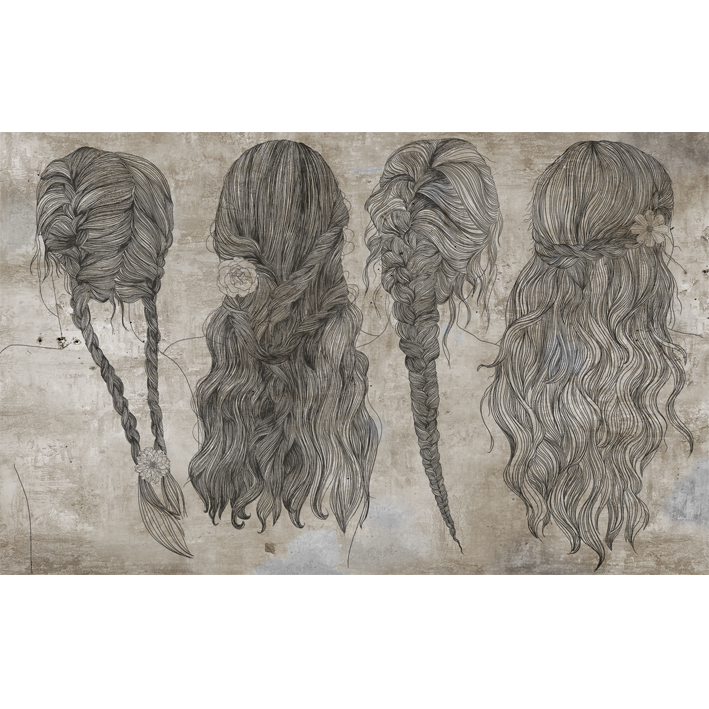 FLEURS CHINOISES GRISES FOND MUR ANCIEN