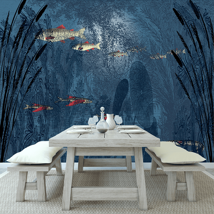 WALLPAPER “ARCHITECT'S DRAWING ON A DARK GREEN BACKGROUND