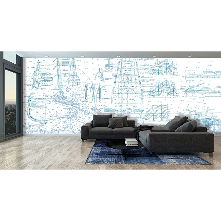 WALLPAPER “ARCHITECT'S DRAWING ON ECRU BACKGROUND