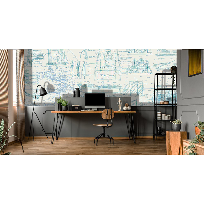 WALLPAPER “ARCHITECT'S DRAWING ON ECRU BACKGROUND
