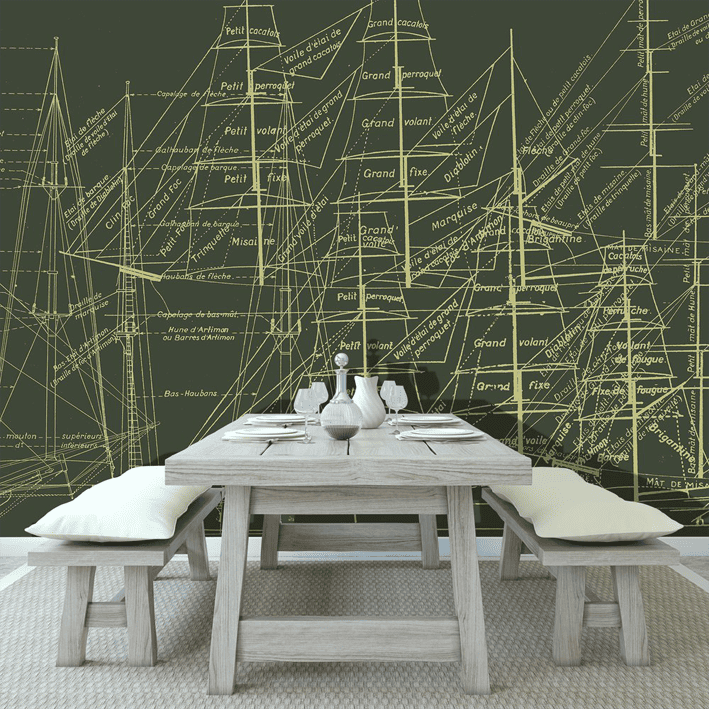 Wallpaper presenting the vocabulary and terms related to spars on Belle Époque sailing ships. Thanks to their precise designations, these elements enabled sailors to communicate effectively in the complex management of the sails and maneuvering of tall ships.