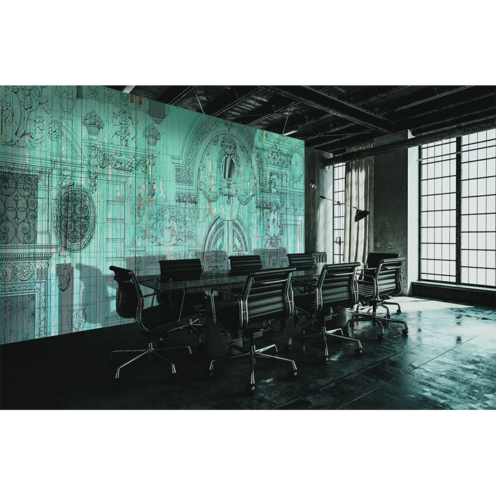 This wallpaper featuring architectural designs can be used to add a touch of sophistication to a living or dining room. The graphic, classic look of this type of wallpaper blends harmoniously with elegant furniture, neutral colors and materials such as wood or marble.