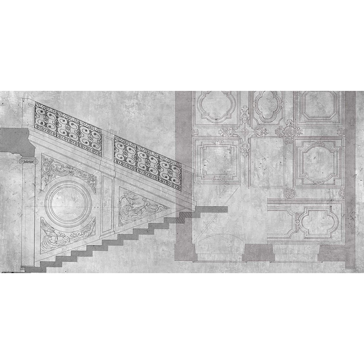 This wallpaper depicting a Baroque staircase on a grey background offers a spectacular blend of luxury and elegance, while creating a dramatic and majestic atmosphere. It transforms an ordinary space into a ceremonial hall, evoking the grandeur of Baroque architecture while offering a dynamic and fascinating visual effect.