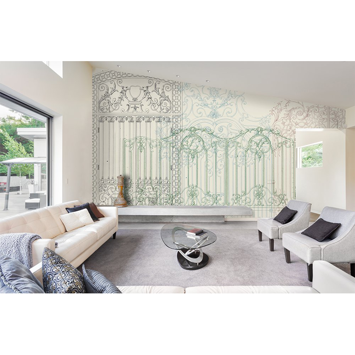 This wallpaper featuring ironwork designs adds a spectacular decorative dimension to any space. With its delicate motifs and technical details, it evokes the beauty of metalwork, while creating an elegant, sophisticated and timeless ambience. It combines art, architecture and design to create a refined decor full of character.