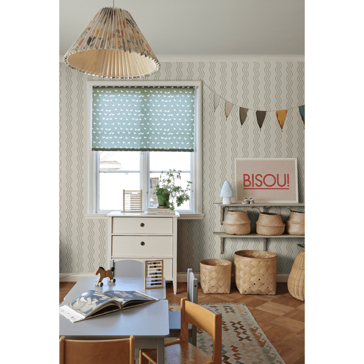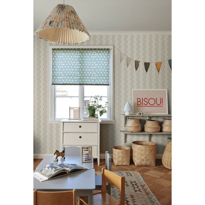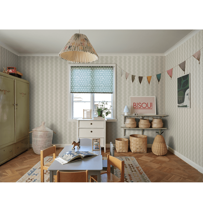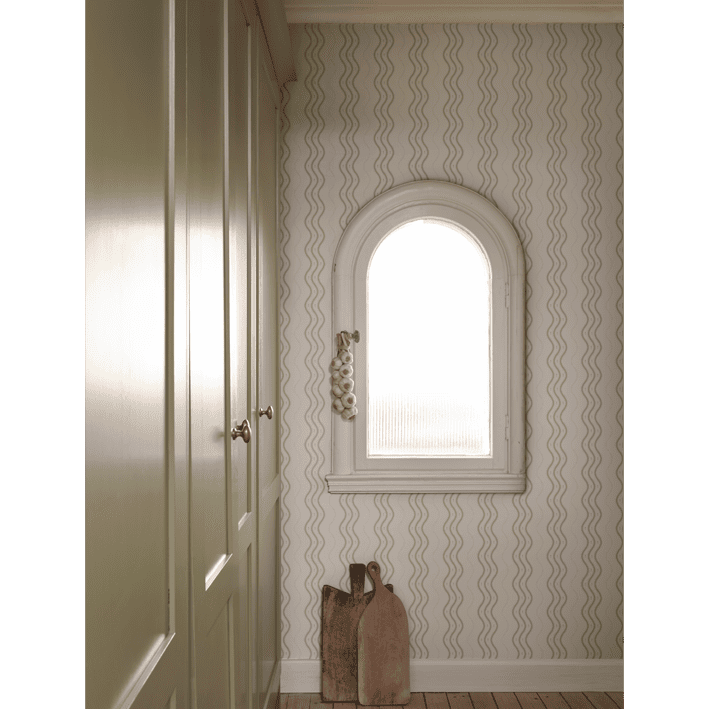 In collaboration with Johanna Bradford, we have developed this bold stripe that is both unique, has a slightly humorous tone, and looks very stylish on the wall. If you look closely, you will find the little crocus flower also featured in the pattern Betty. Ben, Garden Green, has soft pastel green stripes and dots on an off-white background.