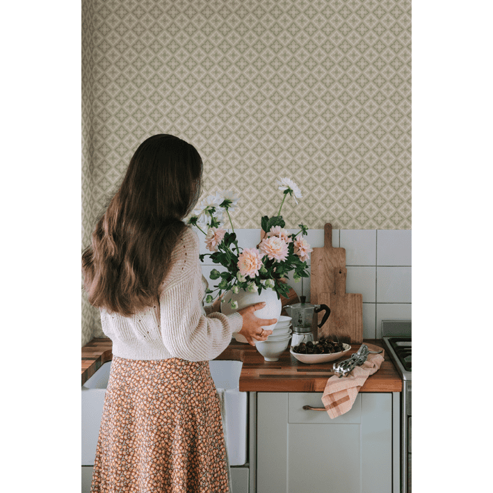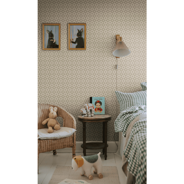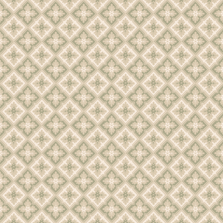 This classic trellis was one of the most popular patterns of the 1800s and likely originally covered a ceiling. Today it decorates the walls just as beautifully. The color scheme, Green, comes in shades of soft green and beige.