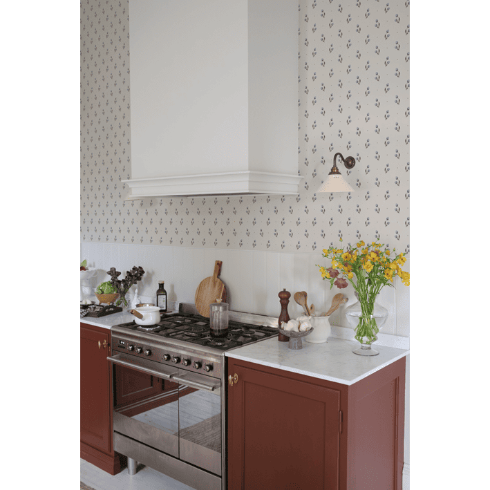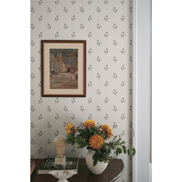 In the wallpaper Siv, we took a closer look at the berries on the hawthorn trees. The small clusters create a friendly, decorative impression, beautifully matching more patterned designs. The lovely little berries come in a warm, muted yellow on a beige base in the color scheme Oat.