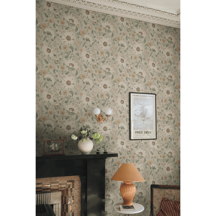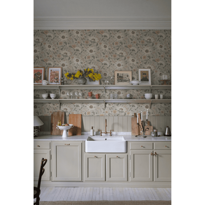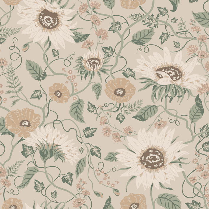 "The Island of the Sun and the Winds" is a familiar saying for Öland. Still, we want to pay attention to and cherish the Sunflowers, Poppies, and Chicory that call this grand flower bonanza home. Solveig, Clay, has a warm beige base adorned by flowers in muted shades of warm yellow, beige, and pink with green foliage.