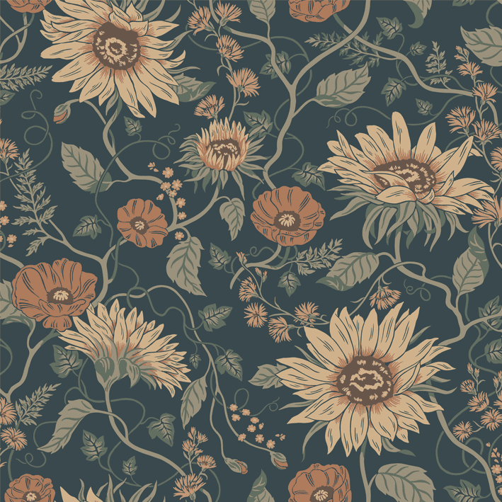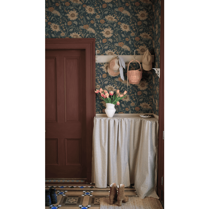 "The Island of the Sun and the Winds" is a familiar saying for Öland. Still, we want to pay attention to and cherish the Sunflowers, Poppies, and Chicory that call this grand flower bonanza home. Solveig, Clay, has a warm beige base adorned by flowers in muted shades of warm yellow, beige, and pink with green foliage.