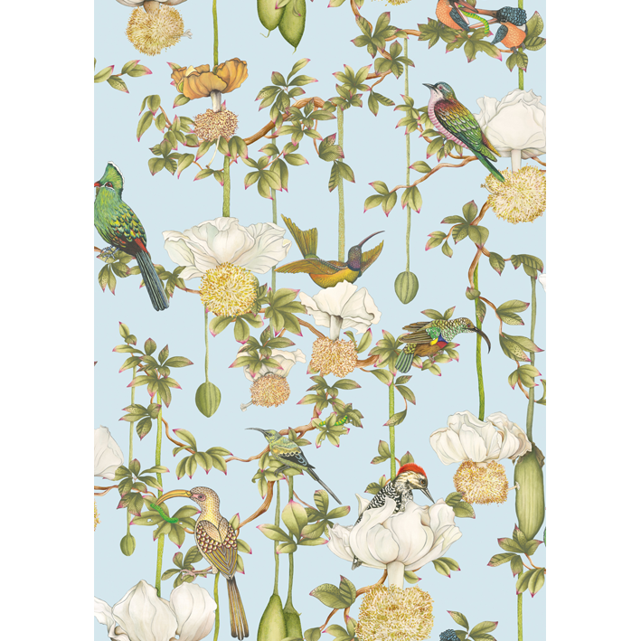 A companion design to Tree of Life, Baobab Botanica takes the scene’s buoyant flora and fauna and creates a beautifully interconnected network of nature’s garden. Adding to the natural palettes of Stone and Sky Blue, this effervescent design has also been coloured in a candy Blush pink, classic Duck Egg, earthy Safari, and midnight Onyx.