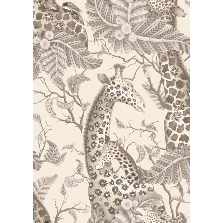 Each giraffe is embellished with incredible hand-painted details, each proudly displaying their markings. A monochromatic colourway of Pebble provides a gentle softness to the design, whilst Stone & Mulberry and Safari offer quintessential Cole & Son exceptional colour. This design is also available in a truly Royal Gilded palette that gives the scene a golden hour glow, with a subtly textured base allowing for the light to enhance each detail.
