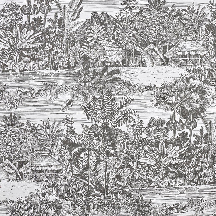 As if sketched on the spot with a pencil, this drawing takes us along a river in the middle of the rainforest, in this magical country called Belize. Printed on wide width glazed non-woven backing.