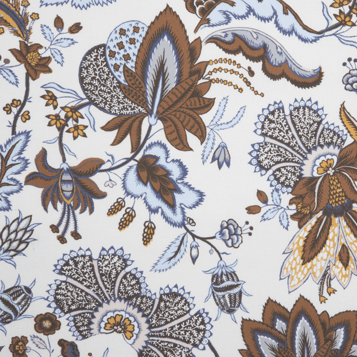 The ÉGLANTINE fabric is inspired by a Quenin archive, in the spirit of a floral indienne. Redrawn to retain the hand-printed effect of the archive, with all the irregularities of the design line, this Indian is woven and printed in France on a 100% cotton canvas.