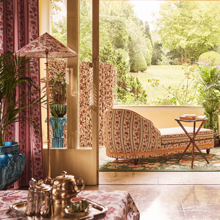 Our AUGUSTINE fabric is a stripe adaptation of the ÉGLANTINE fabric (4266): a Quenin archive, in the spirit of a floral indienne. Redesigned to retain the hand-printed effect of the archive with all the irregularities of the drawing lines, this floral indienne is woven and printed in France on a 100% cotton canvas.