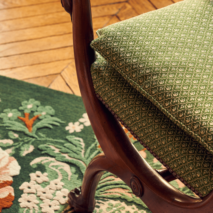From a Quenin archive and with its adorable little flowers, MYOSOTIS represents the idea of the Belle Époque collection: to modernise classics with bold colours and subtle shine. Made mainly from cotton and linen, this fabric is woven in our Panissières manufacture (EPV).
